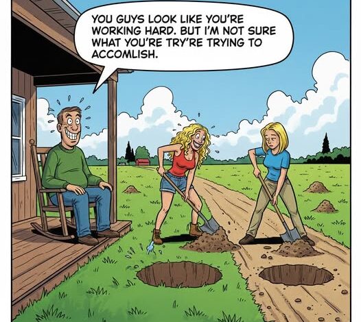 A man was sitting on his porch one quiet afternoon, rocking gently in his chair, when movement down the road caught his attention. Two blondes were working side by side in a vacant lot. Both had shovels. One would dig a hole, step back, and almost immediately the other would step forward and fill it in. No pause. No discussion. Just a steady rhythm: dig, fill, dig, fill.