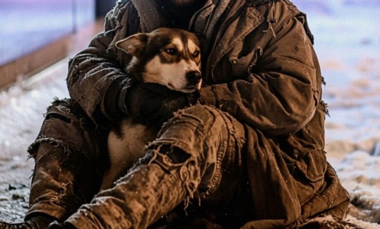 “Sir, please,” the man rasped, his voice barely audible over the wind. “Just some hot water? Anything for the dog?”